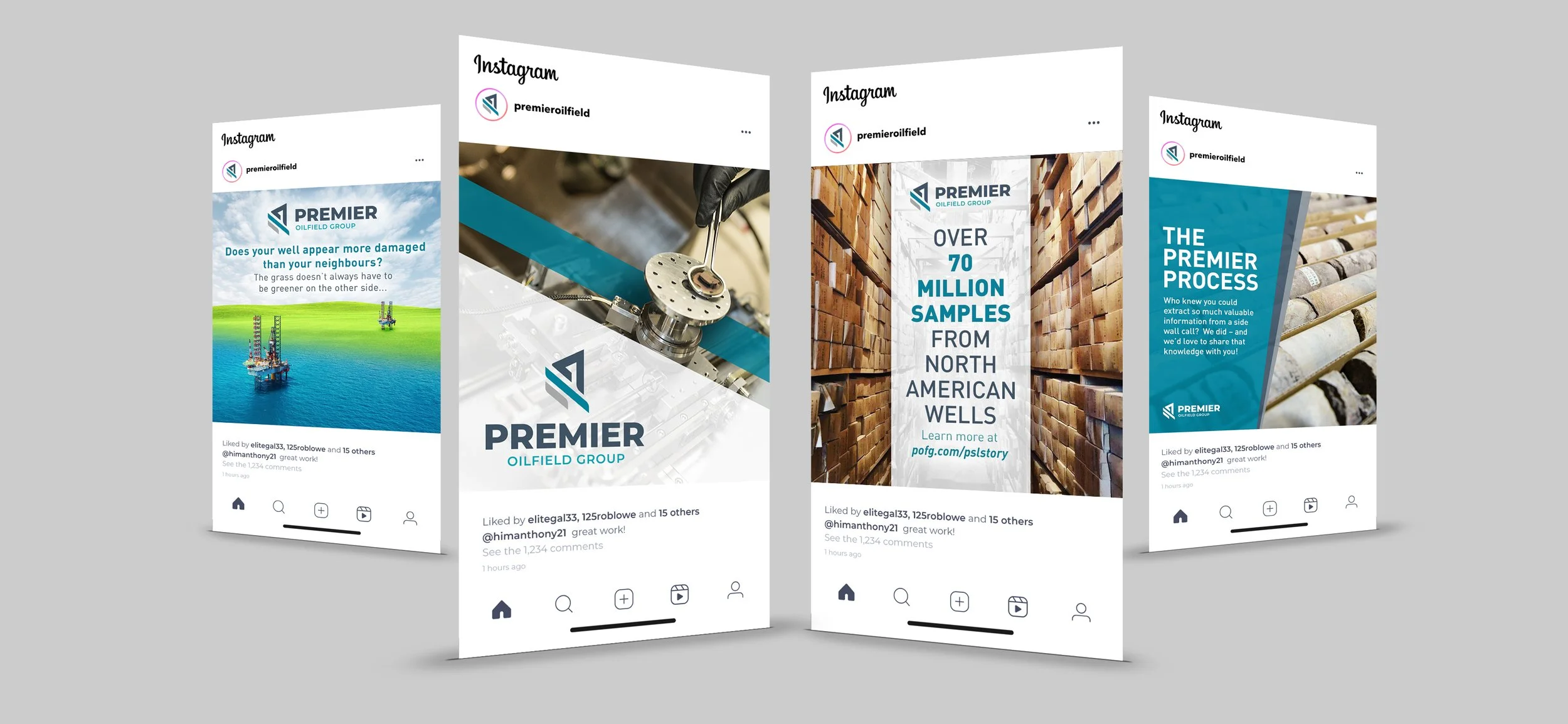 Problem: Multiple mergers and acquisition caused the company to have to form under a new name. Therefore, “Premier Oilfield Laboratories” was changed to “Premier Oilfield Group” or POFG for short. So an all new corporate identity and visual language was need to effectively communicate their new services and company direction.